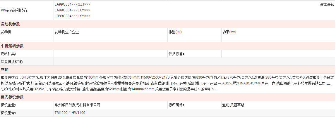 易燃液體罐式運輸半掛車