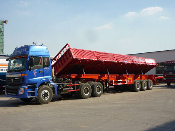 長鎖桿倉柵半掛車是在初期的煤炭運輸廂式半掛車的基本上發(fā)展趨勢來的,其頂端呈開放式,有利于裝車;周圍用白帆布做好封閉,在功用上與廂貨車差不多。通常車輛尺寸在11m以上的情況下,每側(cè)設(shè)計3對對門;車輛尺寸在11m以下的情況下,每側(cè)設(shè)計2對對開門。側(cè)門全都打開的情況下,其尺寸能達到工程機械的裝卸貨要求。這類車型運送的物品以煤炭、砂石料等物品為主導(dǎo)。